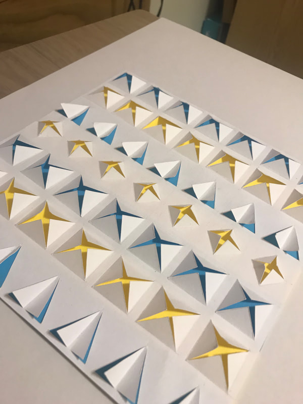 The first two weeks of this project revolved around us practicing, experimenting, planning and exploring. The aim was to get us to develop competence independently and learn from looking at the work of others; to engage with the world. We were given two weeks of old school projects to work through to showcase our problem solving, showing no glue or construction marks. Books Our first few tasks instructed us to make three books; saddle-stitched, stab-stitched and perfectly bound. Each of these included certain specific requirements such as size and decorative motives on the covers and inside the pages. Presentation The next tasks involved working on our presentation skills, mounting postcards, drawing out shapes pristinely and embossing. Each of these had to have specific size requirements and be centred correctly. Cutting We then moved on the cutting. Tasks included cutting out a circle perfectly with a 40mm radius, cutting out and mounting type in a specific size and font and creating our own decorative paper cut out using a craft knife. The Third Dimension These tasks involved making 3-D shapes of specific measurements, experimenting with surface patterns and creating our own paper sculptures using cutting and folding techniques. Paper Play Session This sessions aim was to encourage us to think about folding, cutting, light and shape by creating mini pop-ups and photograph them from a series of different angles. Anatomy of Type and Type Personality Workshop