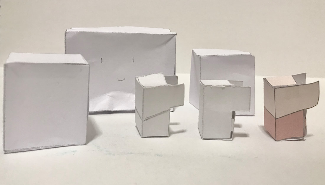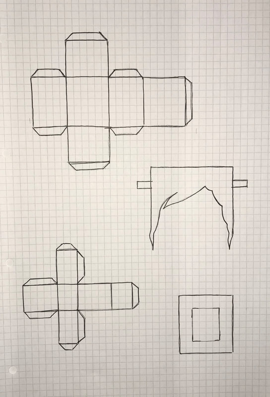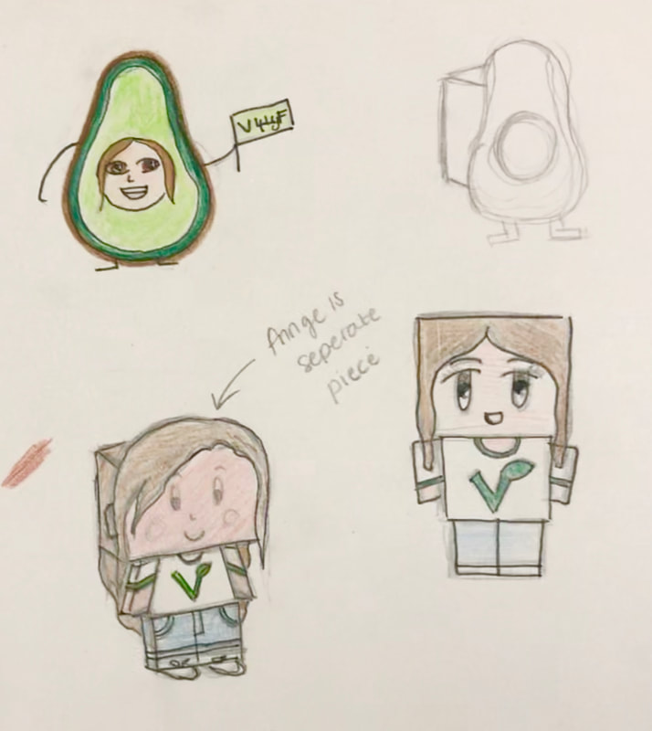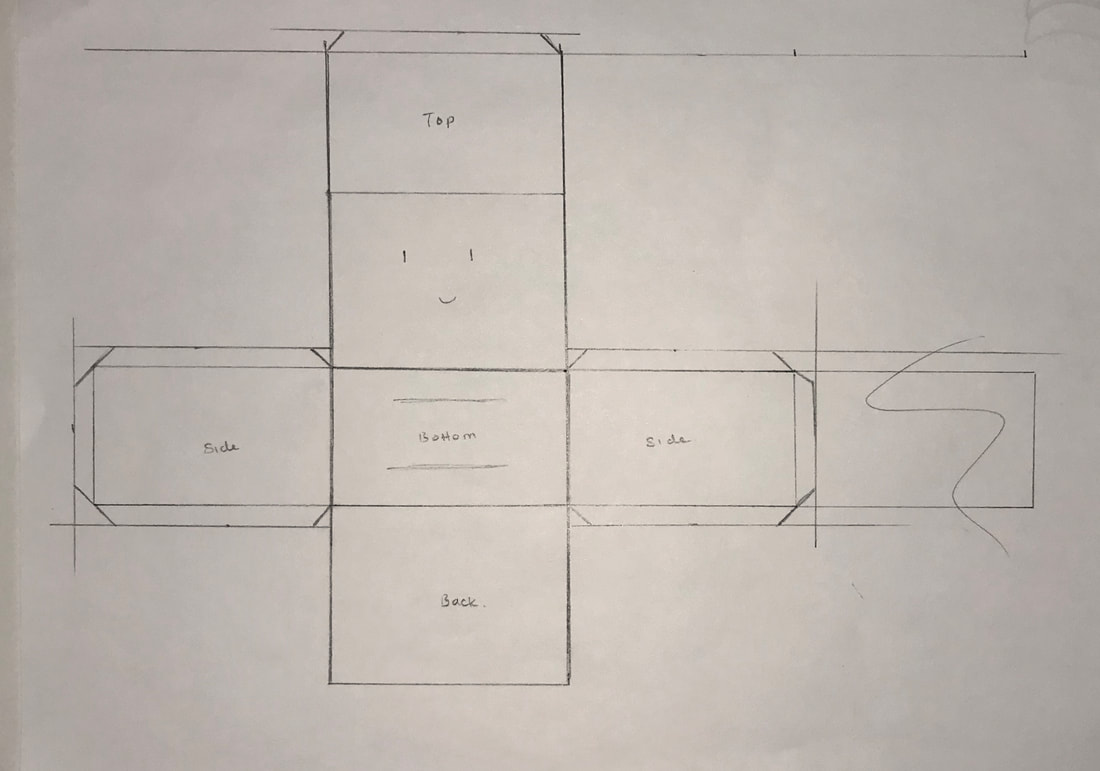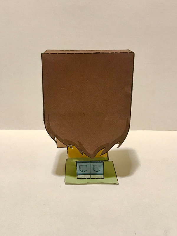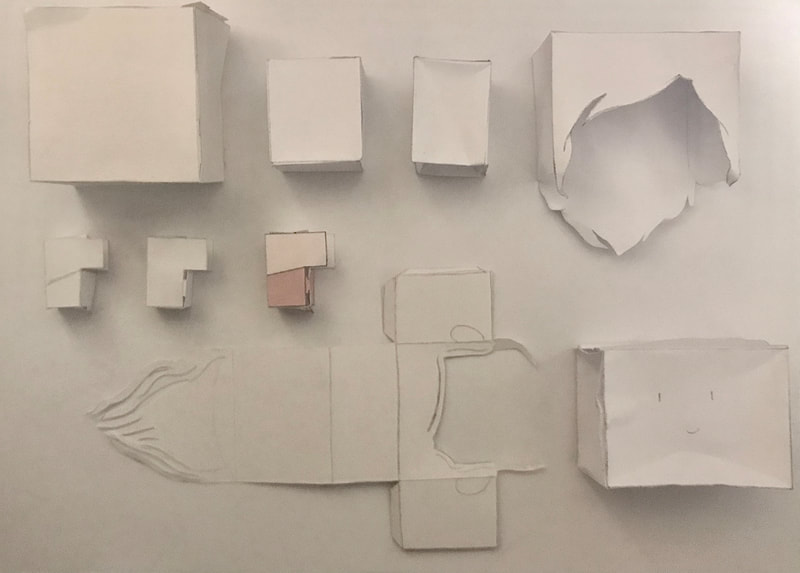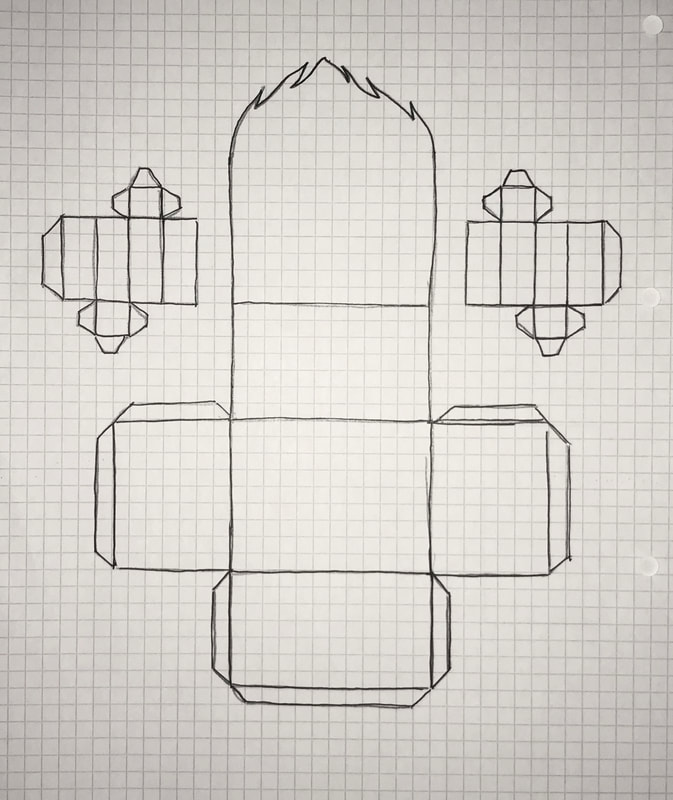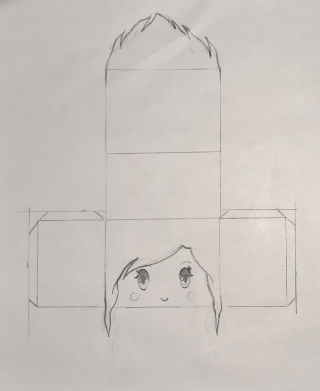 Brief For our second project we were asked to transform ourselves into an inventive 'designer' paper toy. We were required to present the made up 3D model of our character, in addition to the A4 net with associated typography, graphics, instructions and cutting lines. Our toy had to be in some way recognisable as ourselves, reflecting our own culture, background, interests, sense of humour and concerns. It could be rendered digitally or as traditional artwork. Research Paper toys are constructed by cutting, folding and glueing paper to form desired shapes. They originate from the art of origami (research from here). I began my research by looking at other designs for paper toys online, particularly at different ways to layout the nets to create the shapes/pieces. I wanted to be able to draw out the net myself from scratch rather than just using a template. Here are some of the ones I used for reference (links are in the captions): Development I first brainstormed some ideas of how I wanted my paper toy to represent me by doing a quick mind map of some of the things I associate with myself. For example, my interests include Harry Potter so one idea was to create myself wearing a Hogwarts robe, holding a wand or spell book. Another idea involved representing me being a vegan; wearing an avocado costume to add some humour, simply a typical outfit with the vegan symbol on the shirt, and extras such as holding vegetables to link to the stereotype of vegans only eating healthy. Here I also thought a little bit about the net itself with the idea of having an interchangeable face to show different emotions. I then did a few quick sketches of some of the initial ideas. I decided to move away from the avocado costume idea as I wanted my paper toy to still have sharp edges and be cube-like similarity to how they are traditionally. So I focused on drawing visuals of myself wearing a typical outfit I would wear that still showed a part of my lifestyle with the design on the top. Here are some mock ups/experiments of some of the shapes I wanted to create. Inspired by one of the paper toys I linked above, I tried to make a net for the head and hair separately as I thought it made it look like it had more dimension. Next I started to draw out rough diagrams of the nets for the shapes that would make up my paper toy. thinking about where the tabs needed to be placed for gluing. I chose to create nets for the top, left arm and right arm, bottoms, head, a hair piece and a base. I then decided to draw the nets onto graph paper in order to keep them as accurate as possible. Using a light pad, I cut around the nets so that I could arrange them to fit on A4 paper before scanning them and drawing them out digitally on Procreate, making sure the lines were crisp and clean. After this, I constructed the mock up nets into their 3D models using a craft knife and ruler to cut out the nets, score the fold lines and glue the tabs together. Final Piece Once I was happy with the nets, it was time to add colour. Using my preliminary sketches of designs as inspiration, I used Procreate to colour my paper toy. I wanted it to be realistic and true to my likeness, but in a cartoony style. I coloured the tabs black to make it clear they were the parts to add glue to and also made the lines that are scored and folded as dashes. I then designed the page to include instructions for construction as well as labels to each of the pieces to make it look more like a finished product. Overall, I am happy with my finished paper toy and I feel it fits the brief well as it represents me and my interests. The things I think I could improve on the most is that my research could have been more thorough, in addition to the amount of initial ideas being drawn up as thumbnails so that I had more designs to work from. However, I did experiment with the nets and shapes and how I could draw out the grids before committing to the final piece, showing development from start to finish. Below is the made up 3D model of my paper toy.