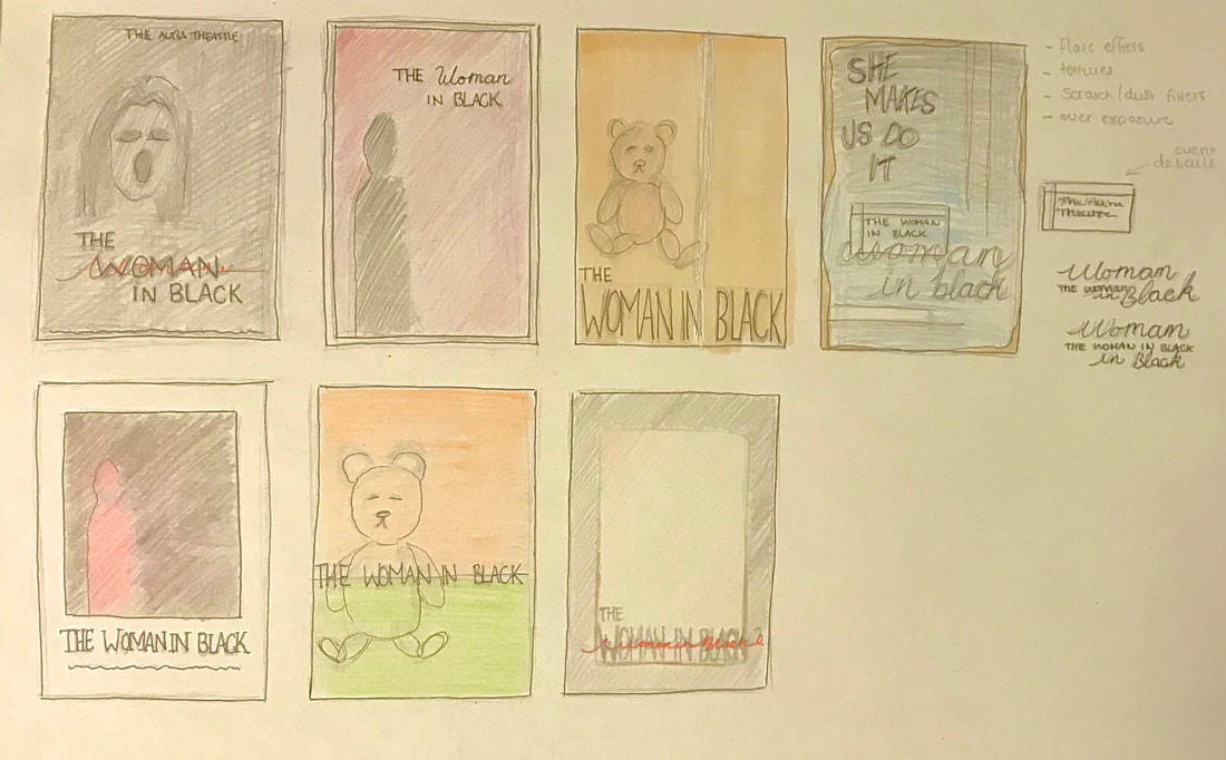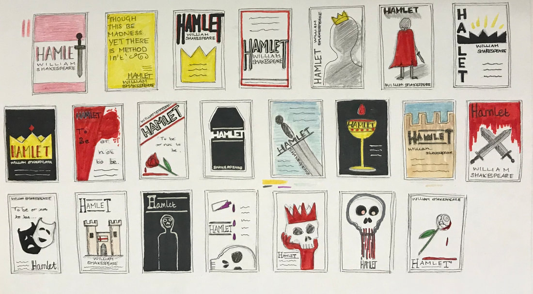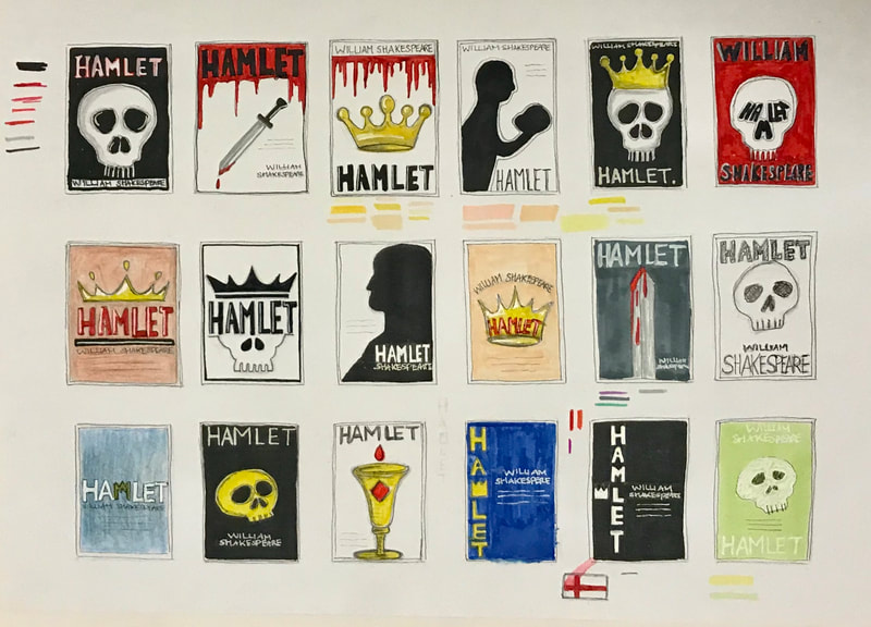 Brief For this project we had to design 40 different thumbnail ideas for a portrait format theatre poster. We then had to take five of our ideas and and refine/develop them further. Finally we had to take the three best designs and work them up as more detailed client visuals on a slightly bigger scale. Research/Thumbnails I chose to design a poster for the theatre production 'Hamlet', a play about the ghost of the King of Denmark telling his son to avenge his murder by killing the new king, who is Hamlets uncle (research taken from here). Themes of the play revolve around madness, life and death and revenge, so many of my ideas feature elements such as skulls, swords, ghostly figures and blood. Developments I really liked the idea of using a crown shapes as part of the lettering so I explored this idea further when developing my poster thumbnails. I also looked at a few different typefaces; ones that had a more medieval look to them. I tried to think of different ways to layout the poster, trying some posters with the main title of the play at the top and others in the centre. Final Piece