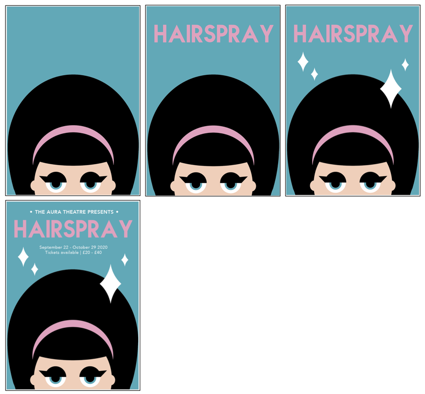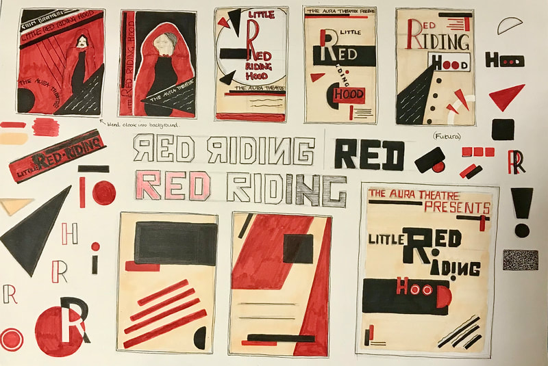 The first two weeks of this project revolved around exploring how colour and arrangement are a crucial part of visual communication, working using both analog and digital processes. Colour Theory To start the analog activities, we had to paint a colour wheel using only red, blue and yellow paint, showing the primary, secondary and tertiary colours. Next to this we had to create two sixteen step tonal scales, one using just black and white paint and the other using black and white along with one of secondary colours we mixed for the colour wheel, attempting to make each step tonally identical to the grey scale. We then moved on to re-create the classic Bauhaus colour and personality exercise in order to explore the potential of colour communication. Using square grids we had to use the three primary colours along with black and white to mix colours we liked, making sure every square was different. We then had to use the same technique to create arrangements of coloured squares that communicated 'Mumbai, a rainforest, Blackpool, a misty morning, Autumn and a hospital ward. Designing with Type Our next task required us to use only letterforms to create six final digital typographic designs using given typefaces in combination with as many colours as we saw fit in order to answer a 'problem'. The point was to help us explore the infinite possibility of shape, arrangement, colour and contrast as tools to communicate. Using Adobe Illustrator, the process of creating these type designs can be seen through the screen grabs below: Colour Materials and Abstract Collage Another analog activity required us to explore the possibilities of paint, coloured paper and glue to create arrangements and experiment creating pleasing compositions to set us up for our next lecture. Composition This week we had to research and work in the style of three designers: Vaughan Oliver, Peter Grundy and El Lissitzky. The aim was to understand the key elements of their work; how they use composition, colour, type, imagery, and replicate their styles using Adobe InDesign, Illustrator and Photoshop. We had to produce A3 posters in the style of each of the designers for the theatre productions: Little Red Riding Hood, The Woman in Black and Hairspray. Vaughan Oliver/The Woman in Black Vaughan Oliver is best known for his work designing album covers for The Pixies, combining dark photography and experimental typography, and using digital and analog techniques. I collated a few of his works together to use as inspiration, all found on Google Images. For my thumbnail sketches, tried to play around a little with different poster layouts and placements for the typography as well as a few ideas of what kind of imagery I wanted to use to represent the theatre production. I chose to use this artist for 'The Woman in Black' due to it incorporating such dark imagery and texture, which I felt fit in well with the theme of horror. I then began experimenting with some ideas using Adobe Photoshop, playing around with different filters for the imagery, (the image I used is linked here) and combining different fonts to see which looked the most pleasing. I also added texture by overlaying some dust/scratches (linked here) to make it look for worn away and old as well as noise as it looked too clean. For this design I tried to combine a serifed font with a calligraphy font. Being new to this program, I similarly experimented with some more designs (image used linked here; texture linked here). Before created my final poster, I wanted to experiment a little with combining different typefaces so see what worked well together; I tried to make them look sort of grunge. However, I did find this quite difficult. For my final poster, I used one of the images I used before, layering on different filters to make it look over exposed and grunge looking. I also added textures and noise to add to the worn away, old photo effect. I then added boxes to include the information about when and where the production is held, and then finally, I chose to use a calligraphy font in a muted colour behind two complimenting serif fonts of the title of the theatre production in order to make it pop more. Peter Grundy/Hairspray Peter Grundy is an illustrator and designer known for his work on infographics, highlighting the power of playful colour and basic shapes to communicate. I collated some images from Google to help inspire me. I then drew up a couple of thumbnails of ideas for my 'Hairspray poster'. Using Adobe Illustrator, I began by creating a few elements using vectors that I could use for my poster designs, by combining individual shapes to create images. I then experimented with some colour palettes taking inspiration from Grundy's work, as well as some simple sans serif fonts to communicate the information about the production clearly. Here I experimented with some other poster layouts. The first one I kept the type centred and added a few extra elements to create more interest. For the other design I chose to include some of the other vectors I created, focusing on using complimentary colours in order to make the poster stand out. El Lissitzky/Little Red Riding Hood I began my research by googling images of his work, collating images I found had appealing compositions that would inspire me in creating the poster. Lissitzky was most well known for his Russian modernism, constructivist designs, greatly influencing the Bauhaus movement. A master at mass communication, his limited colours and fonts created powerful dynamic geometric layouts. Looking at his work its clear he favoured a particular colour palette: red, black, white and sometimes some muted yellows, and thought that would work really well with the theatre production I chose to do in his style. When drawing up my initial thumbnail ideas, I tried to incorporate his dynamic use of layout using simple shapes, and tried to think about how to couple the shapes with the type. Some designs I also wante