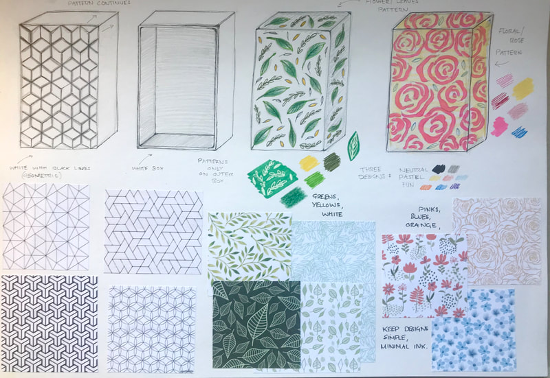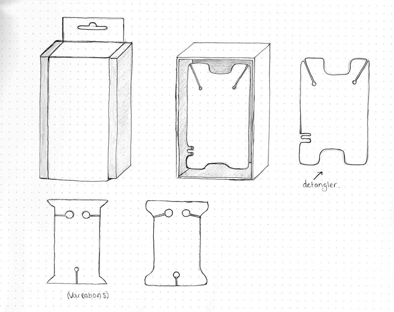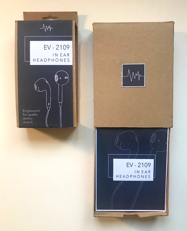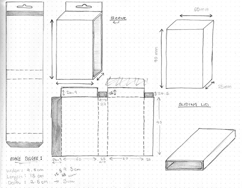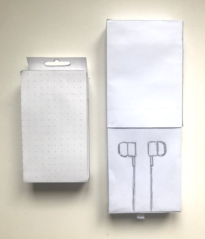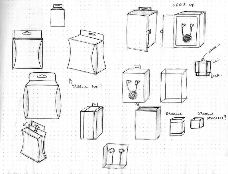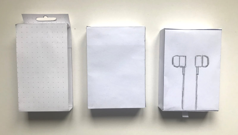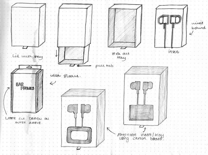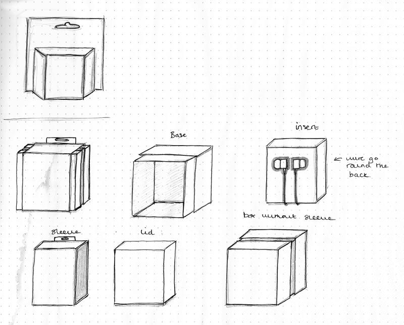 Brief Our first project involved us having to identify a product that's currently packaged and distributed using unnecessary single use plastic or mixed materials and design a new packaging solution using 100% carton board or corrugated board. Both the structure of the pack and the surface graphics had to be considered. Research I began first by exploring a range of different 3D forms to see what different materials could do and also help inspire a product to package. I started off using plain paper to practice folding and construction techniques and then moved onto using a more sturdy material than could possibly be laser cut. After careful consideration, I settled on my product; ear-bud headphones. I chose this product because they are very often covered in unnecessary plastic which is not only bad for the environment but also makes it very difficult to get into without damaging the wires inside. I decided I wanted to try and design a box that was just as aesthetically pleasing and still protected the product. Initial Ideas I started drawing up some concepts for the box, wanting it to still be easy enough to hang on shelfs and be displayed easily. I explored designs that were a little more dynamic with their shape to begin with but eventually thought I would be able to make better use of the space inside if the box remained a more simple shape. ![]() Development I finally settled on an idea for the box which was to create a slide-out matchbox with an outer cover packaging that would contain all the surface graphics and keep the box more secure whilst displayed. I also explored how to place the headphones themselves inside the box as I didn't want them to be loose. I thought about using layered corrugated card and laser cutting out the shape of the ear pieces and wire but was struggling with the shapes. Through more research I then came across a concept were people were cutting up old credit cards to wrap their headphones around in order to stop the wires from becoming tangled whilst travelling. Mock Ups I then began making some 3D mock ups of my design, first just with plain paper and then I experimented a little with the corrugated cardboard. I struggled quite a bit with figuring out how big the box should be so that was a bit of trial and error. I wanted it to be as compact as possible so that the matchbox could also be reused to store the headphones in instead of being thrown away. Here I did try to create the cut outs for the inside packaging by hand using the thicker brown card which was a lot easier to work with, but the shapes of the headphones were just too tedious. As a result I went with the other design instead inspired by the credit card trick and experimented with a few different shapes for the headphones to wrap around as securely as I could with it being a less study material. Further Development After deciding on what size the box should be I began creating the final net and its dimensions. I used a matchbox template from a website called Template Maker as a guide to drawing out my own net. The final net I drew straight onto the brown card so the scans are not as clear as I would have liked them to be. Surface Graphics Development Initially I had the idea of adding a pattern to the matchbox so the buyer would be encouraged to reuse it but I wasn't sure how I was going to transfer the design to the card as I couldn't print directly onto it, and I also quite liked the minimalistic look of the cardboard anyway. I then moved on to focus more on the surface graphics for the sleeve instead, still keeping to a minimal design. I chose to include an image of the headphones I drew in Procreate to make up for the fact you cant see the product through any plastic. I created the final surface graphics using Adobe Illustrator, drawing out the net of the sleeve in the correct dimensions. I used the barcode and other symbols from the vector resources folder we were provided. I kept it modern looking by using purely sans-serif typefaces, with a simple black and white colour scheme so that it would appeal to a wider range of customers. I also created a little logo for the packaging, using a vector from this website, as well as a little card to go inside the box so it looked more professional. You can see the process below: Final Piece
