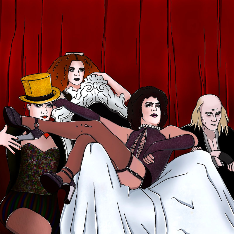 Brief Originally we were suppose to be creating an animation for our last project but unfortunately unforeseen circumstances made that difficult. As a result we were given an alternative brief; without losing the essence of the plot, condense a film or book into 10 images for a social media platform such as Instagram. The film I chose was the Rocky Horror Picture Show. Research I began looking into different styles I could use for my images. I wanted to explore a more illustrative style for this project so I researched a few different approaches. My idea was to create single images that combined the main elements in the story without having to rely on words to describe it. Storyboarding The musical by Richard O'Brian follows the story of a newly engaged couple who after getting caught in a storm find themselves at the home of a mad transvestite scientist, Dr Frank-N-Furter. He unveils his new Frankenstein style creation in the form of a perfect muscle man named Rocky, before the party is crashed by ex-delivery boy, Eddie, whom Frank then takes down. The film then progresses to the couple beginning to embrace Franks seduction, ending with the deaths of most of the inhabitants of the castle while it blasts off back to Transylvania. I did further research into the movie, finding images to use as references for my drawings and to help me figure out which scenes I wanted to cover. I began condensing the plot of the film into 10 images to represent only the essential information of storyline development. I created a ten step storyboard to show what each image would include and brain storm ideas for what could be animated. Developments I chose to go with a simple comic style for my images, using mainly block colours, similar to vector illustrations even though I used Procreate instead of a vector based program; I wanted to use a program I was more comfortable drawing freehand with. I started out drawing out the black line work first. I then began adding the colour; you can see the process I went through when adding the different layers. Final Piece Here are the 10 finished images after adjusting the saturation and contrast and displayed on my Instagram page. After completing the main flat images I added a little bit of animation to a few of them, turning them into GIFs using the Procreate animation feature. All of my designs including the animated GIFs for this project can be seen here on my professional instagram account.